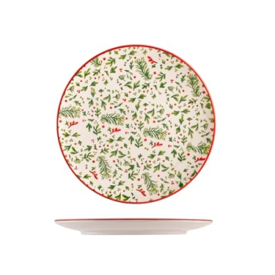 H&H Set of 6 Christmas Dinner Plates Berry 26 cm