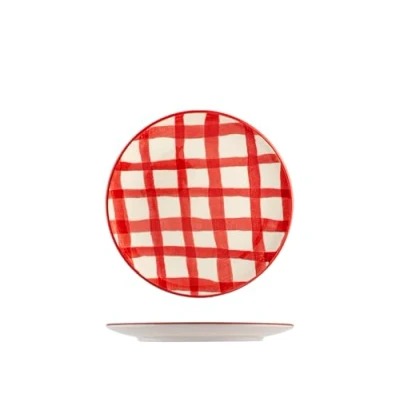 These plates are characterised by their soft brushstrokes that cross each other, creating a harmonious and welcoming checkered pattern in vibrant ruby hues. These plates are ideal for adding a traditional and festive touch to your party mise en place Made of ceramic Dishwasher and microwave safe Ideal to alternate with the Xmas Stripe Green plates