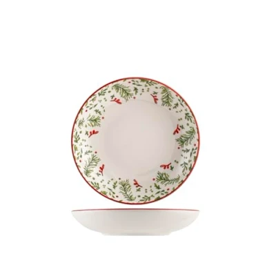 An enchanting pattern of red holly berries and pine twigs evoking a joyful and luminous ethmosphere. These plates are ideal for adding a traditional and festive touch to your party mise en place Made of ceramic Dishwasher and microwave safe