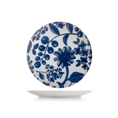 H&H, Set of 6 Grandiflora Dinner Plates in Blue Porcelain Decorated, 27 cm Elegance and Functionality for Any Table
