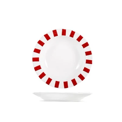 Set of 6 soup plates: made of high quality stoneware, perfect for soups, soups and first courses ELEGANT DESIGN: With red and white striped decoration, make you look more lively on your Christmas table 20 cm DIAMETER: Ideal size for portions of soups, soups or salads DISHWASHER SAFE - For quick and easy cleaning without compromising on colours MICROWAVE USE: High temperature resistant without deformation