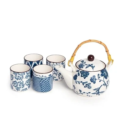 H&h Set Teiera E 4 Tazze Seta in Porcellana