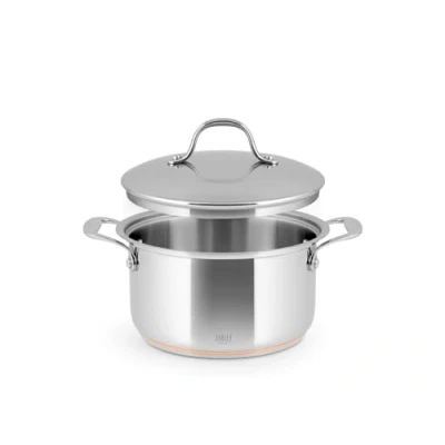H&H Stainless Steel and Copper 2 Handles 18cm Tall Saucepan with Lid