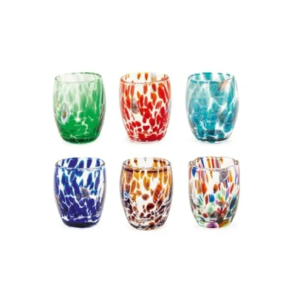 H&H Veneziano Set of 6 Glass Glasses, Multicoloured, cl 5, Made According to The Murano Masters Technique, Hand in Italy
