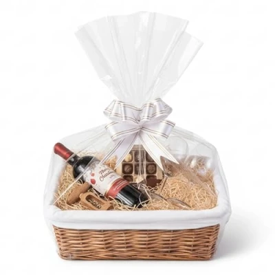 H LINE SMALL Make Create Your Own Gift Hamper Kit Natural Wicker Storage Basket Cellophane Wood Shred Bow Set Ideal for Christmas Easter Christening Wedding Baby Shower or Birthday