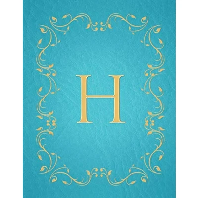 H: Modern, stylish, capital letter monogram ruled notebook with gold leaf decorative border and baby blue leather effect. Pretty cute a ... use. Matte finish, 100 lined pages, 8.5 x 11.