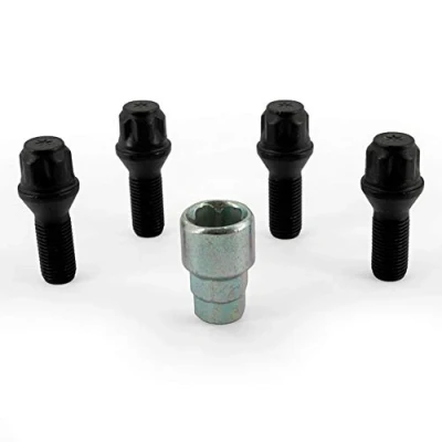 H&R B1452801KEY4 Set M14x1.50x28mm Taper Black 4 Wheel Lock Bolts incl. Adapter