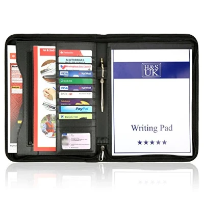 Demonstrate your professionalism with the H&S A4 zipped conference presentation folder, a versatile A4 planner case bag and A4 conference folder, meticulously crafted from premium faux leather for a refined look Experience the convenience of our exclusive feature - an integrated A4 diary holder within the A4 document folder, providing additional storage for all your A4 documents and enhancing your organizational skills This A4 executive folder boasts a practical zip-close design, robust black PVC lining, and space for 11 business or bank cards. It also includes an A4 paper pad, making it an essential A4 document folder for any executive Unique to our brand, this A4 executive folder features a secure internal zip pouch, transforming it from a simple A4 folder with zip to a comprehensive A4 folder organiser including a calculator, meeting all professional needs Elevate your professional image with this A4 folio case zipped leather design, and enjoy the premium quality of this A4 leather binder, ideal for those seeking stylish stationary for men without any transaction risks