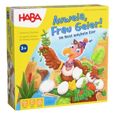 Cooperative fun to play: build a stable nest together with Mrs Vulture and the children and store all eggs safely - beware of the cheeky parrots! Easy rules, quick entry: the short game rules allow a quick start to the game, ideal for children aged 3 and over. Atmospheric game construction: the detailed design and interactive construction create an exciting gaming experience with a high prompt character. Versatile game for the whole family: suitable for 1 to 4 players, with a playing time of approx. 15 minutes - perfect for short rounds in between. Lovingly designed: the game was developed by Emily Schiefelbein and illustrated by Susanne Schiefelbein which makes it a real eye-catcher., Manufacturer: HABA