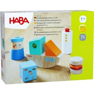 HABA Explorer Building Blocks Boat Set for Creative Play Colourful Wooden Bricks Toddlers Learning Toys Imaginative Construction and Fun Children Ages 1 Year Up