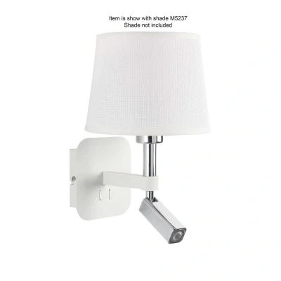 Habana Switched Wall Light No Shade E27 + Reading 3W LED 4000K Matt White/Polished Chrome Mantra