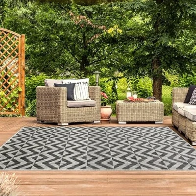 Indoor and Outdoor Rug - Designer Rug made specially from Polyproplene and treated so that it does not retain water! Make the most of the British Weather and use this rug Indoors and Outdoors Colour: Charcoal Grey Design: Modern Mirrored Diamond Geometric We are always accurate in our descriptions and 100% confident in our products and we have a simple returns process. Please read T&C's for conditions., Manufacturer: The Rug House