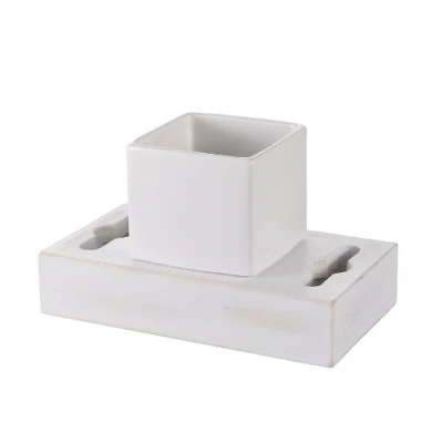 Haceka 1127079 FSC Certified Wooden and Ceramic Toothbrush Holder White