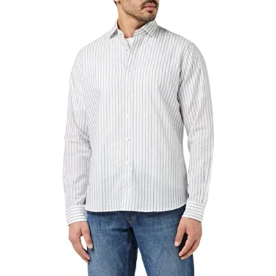 HACKETT LONDON Men's COTT LIN Melange STR Shirt, Grey (Grey/Navy), XS