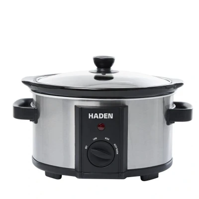 Haden Slow Cooker 3.5 litres Removable Ceramic Pot with Glass Lid 3 Temperature Settings, Stainless Steel Wrap Housing, Perfect for 2 4 People.