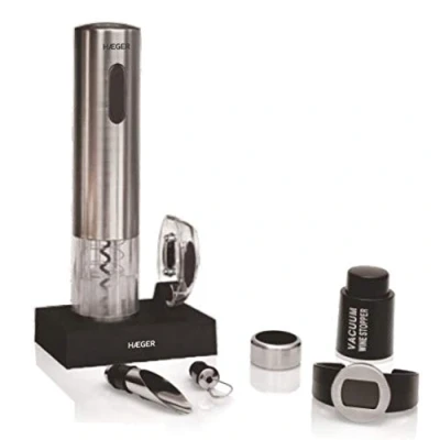 Turns on during charging and takes the cork Deluxe Box Accessories: – Bottle Seal Cutter – Vacuum Pump – Tip with Lid – Ring – Thermometer – Base / Charger, Weight: 2.20462262 Pounds, Manufacturer: Haeger