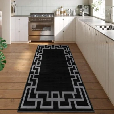 Hafaa Area Rugs for Bedroom Runner Hallway Non Shedding Greek Key Rug Living Room Soft Touch Modern Floor Carpet Nico Black Runners Indoor Easy to Clean(60 x 220Cm)