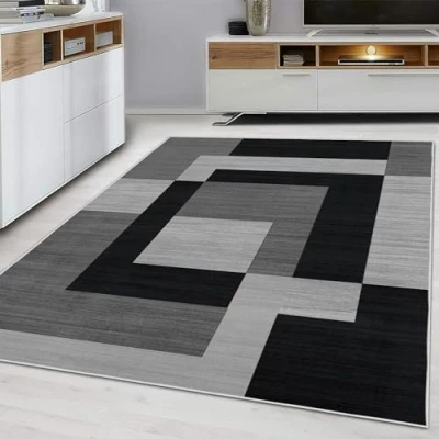 Hafaa Area Rugs Living Room 160x230 Cm for Bedroom Geometric Style Non Shedding Modern Floor Carpet Soft Touch Milo Black and Grey Large Rug Easy to Clean