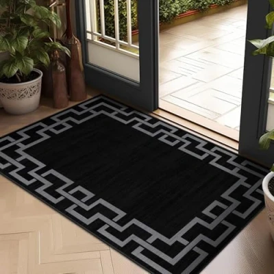 Hafaa Area Rugs Living Room for Bedroom Greek Key Style Front Door Mat Indoor Modern Floor Carpet Durable Soft Touch Non Shedding Nico Black Small Rug Easy to Clean(40 x 60Cm)