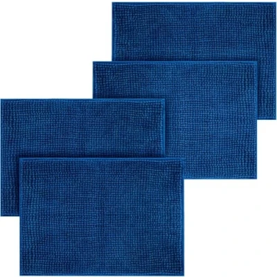 Hafaa Bath Mat Non Slip Anti Mould 4 Pack Navy 50x80 cm Chenille Bathroom