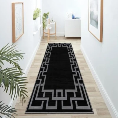 Hafaa Black Runner Rugs for Hallway Non Slip Greek Key Style Carpet living room 60 x 220 cm Printed Carpets Lounge Office Bedroom (Nico Black)