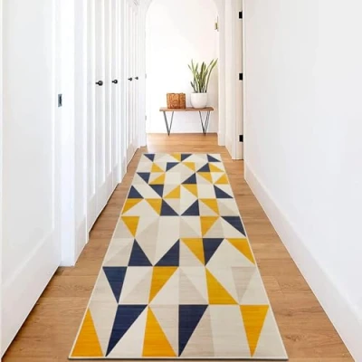 Hafaa Carpet Runners for Hallway Non Slip 80 x 150 cm Geometric Pattern Printed Design Bedroom Yellow Bedside Carpets Kitchen, Lounge (Brio)