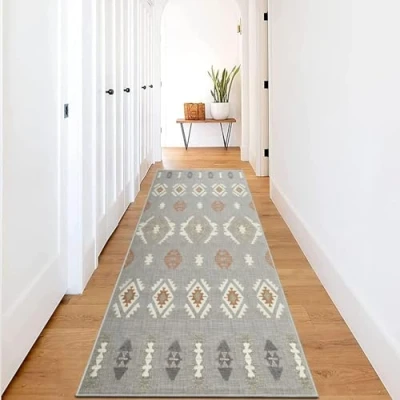 Hafaa Carpet Runners for Hallway Non Slip 80 x 150 cm Geometric Style Tribal Pattern Printed Design Bedroom Grey Bedside Carpets Kitchen, Lounge (NOVA)