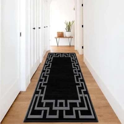 Hafaa Carpet Runners for Hallway Non Slip 80 x 150 cm Greek key Style Printed Design Bedroom Black Bedside Carpets Kitchen, Lounge (Nico Black)