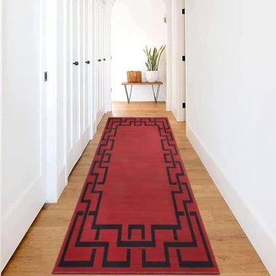 Hafaa Carpet Runners for Hallway Non Slip 80 x 150 cm Greek key Style Printed Design Bedroom Red Bedside Carpets Kitchen, Lounge (Lexi)
