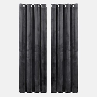 Hafaa Charcoal Blackout Curtains for Bedroom 46 wide x 54 drop Readymade Crushed Velvet Living Room Eyelet Darkening with 2 Tie Backs (116cm 137cm)