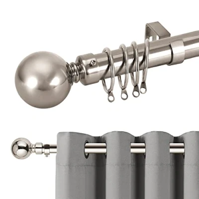 【ADJUSTABLE LENGHT】 70cm -120cm (28 inches to 48 Inches), 120cm - 210cm (48 Inch to 83 Inch) and 160cm - 300cm (63 Inches to 118 Inches) . You can adjust the length to suit your window. This extendable curtain poles includes everything you need: 1 x Curtain Pole, 2 x 60mm Finials , 3 x Brackets , 20 x Curtain Rings , 1 x Fittings Pack. 【STURDY MATERIAL】This curtain rod is made of pure metal, which can hold medium or heavy curtains or sheers. Durable Rod High shine superior plated finish is rust and corrosion proof. Our 1 inch diameter curtain rods are much sturdier than the 5/8 inch decorative curtain rods. 【ELEGANT DESIGN】This curtain pole decorated with round finials on either end, provide a visually balanced appearance. The middle of the rod not easy bent and the ball finials will never fade. With beautiful design, they are good decoration for your home, makes it elegant and fashionable. 【OCCASIONS】This window curtain poles can be used for dining-room, door, kitchen, bathroom, bedroom, living room, office etc. 【BRAND GUARANTEE】All curtain pole provide quality assurance and pursue 100% customer satisfaction. Please contact us if you have any questions.