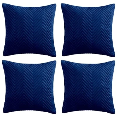 Hafaa Cushions with Covers Included 45 x Cm Set of 8 (4 Navy Cushion Covers, 4 Inserts) Ultrasonic Velvet Square Throw Pillow Case Decorative Sofa Invisible Zipper