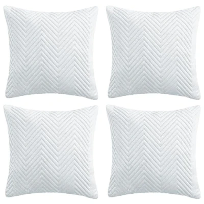 Hafaa Cushions with Covers Included 45 x Cm Set of 8 (4 White Cushion Covers, 4 Inserts) Ultrasonic Velvet Square Throw Pillow Case Decorative Sofa Invisible Zipper