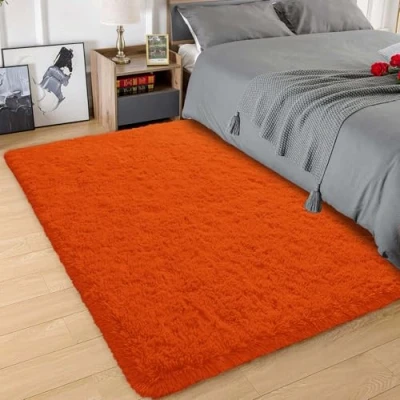 Hafaa Fluffy Rugs Living Room Rust Area for Bedroom 80cm x 150cm Anti Slip Modern Shaggy Rug Plush Carpet Non Shedding Easy To Clean