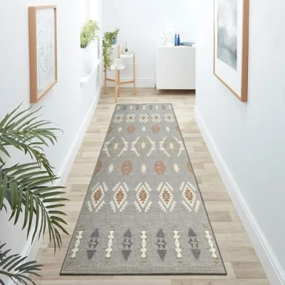 Hafaa Grey Runner Rugs for Hallway Non Slip Geometric Style Tribal Pattern Carpet living room 60 x 220 cm Printed Carpets Lounge Office Bedroom (NOVA)