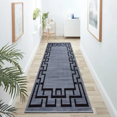 Hafaa Grey Runner Rugs for Hallway Non Slip Greek Key Style Carpet living room 60 x 220 cm Printed Carpets Lounge Office Bedroom (Nico)