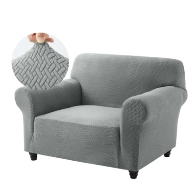 Hafaa High Stretch Sofa Cover Elastic Fit Chair Covers Non Slip Grey Slipcovers Jacquard Spandex T Shape Couch Armchair Super Soft Washable Furniture Protector for Kids/Pets (1 Seater)