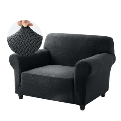 Hafaa High Stretch Sofa Cover Elastic Fit Chair Covers Non Slip Slipcovers Jacquard Spandex T Shape Couch Armchair Super Soft Washable Furniture Protector for Kids/Pets (1 Seater, Black)