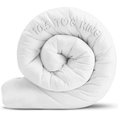 AVAILABLE SIZES: Choose from a range of duvet sizes, including Single (135x200 cm), Double (200x200 cm), King (230x220 cm), and Super King (260x220 cm). These are perfect for any bed size and ensure the right fit for maximum comfort and a peaceful night’s sleep. VARIETY OF TOG RATINGS: Available in multiple TOG ratings for all seasons. From summer duvet (2.5 Tog, 4.5 Tog, 7.5 Tog) to all-season (10.5 Tog), autumn (13.5 Tog), and winter duvet (15 Tog), each quilt offers the ideal warmth and relaxation for any time of year. MATERIAL: This duvet, crafted from durable hollow fiber filling, provides exceptional coziness. Designed for cozy and restful sleep; it combines quality materials for long-lasting comfort and durability. HYPOALLERGENIC & EASY CARE: Ideal for allergy sufferers, this duvet is hypoallergenic and dust mite resistant, promoting healthier and more comfortable sleep. The duvet is wrinkle-free and doesn't require ironing, ensuring a hassle-free experience for your perfect sleep. MADE IN THE UK: Proudly manufactured in the UK to the highest safety standards, this duvet offers unmatched quality and reliability. Ensuring simplicity and endurance without compromising on luxury.