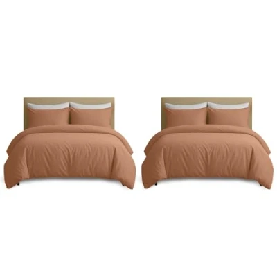 PACKAGE INCLUDES: 2 Pack king size duvet cover sets contain 2 Duvet covers (230 x 220 cm) + 4 Pillowcases (50 x 75 cm). Complete bedding set supplied in secure, easy to open packaging. COMFORT & FEATURES: Brushed microfiber is a durable soft touch fabric, easy ironing, long-lasting color, and excellent resistance to shrinkage after washing. QUALITY & DURABILITY: Precision stitching and secure edge finishing boost durability, stop loose threads, and maintain a polished appearance wash after wash. PREMIUM BENEFITS: Quick drying, wrinkle resistant and stain resistant fabric with a hypoallergenic, skin friendly feel ideal for bedrooms, guest rooms, and everyday comfort. EASY CARE: Machine wash on a gentle cycle, tumble dry on low, and iron on low if needed. Do not bleach.