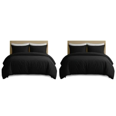 Hafaa Pack of 2 King Size Duvet Cover Sets Brushed Microfibre Black with Pillow Cases Kingsize Quilt Set