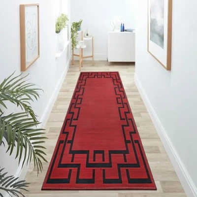 Hafaa Red Runner Rugs for Hallway Non Slip Greek Key Style Carpet living room 60 x 220 cm Printed Carpets Lounge Office Bedroom (Lexi)