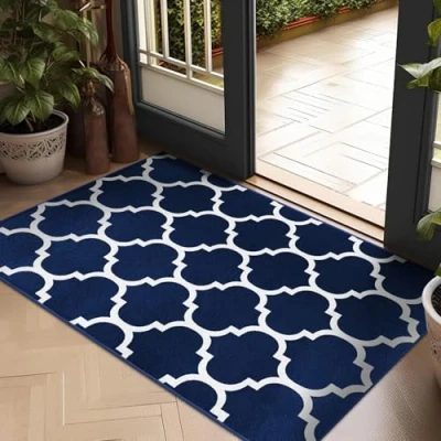 Hafaa Rugs Living Room Area for Bedroom Trellis Style Modern Floor Carpet Non Shedding Durable Soft Touch Ava Navy Small Rug (40 x 60Cm)