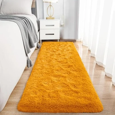Hafaa Rugs Living Room Fluffy Ochre Area for Bedroom Anti Slip Super Soft Thick Shaggy Pile Non Hallway Runner Rug Shedding Easy To Clean Rug, 80 x 300 CM