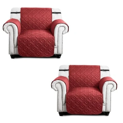 Hafaa Sofa Cover 1 Seater Water Resistant Slipcovers 2 Pack Burgundy/Beige Non Slip Reversible Covers with Elastic Strap Washable Protectors from Pets/Kids/Dogs