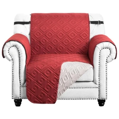 Hafaa Sofa Cover 1 Seater Water Resistant Slipcovers, Burgundy/Beige Non Slip Reversible Covers with Elastic Strap Washable Protectors from Pets/Kids/Dogs
