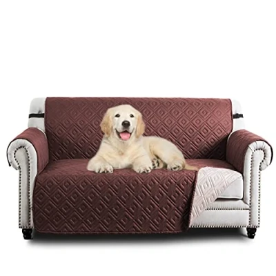 Hafaa Sofa Cover 2 Seater Water Resistant Slipcovers, Brown/Beige Non Slip Reversible Covers with Elastic Strap Washable Protectors from Pets/Kids/Dogs