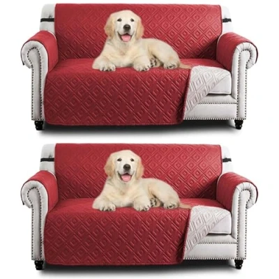 Hafaa Sofa Cover 2 Seater Water Resistant Slipcovers Pack Burgundy/Beige Non Slip Reversible Covers with Elastic Strap Washable Protectors from Pets/Kids/Dogs
