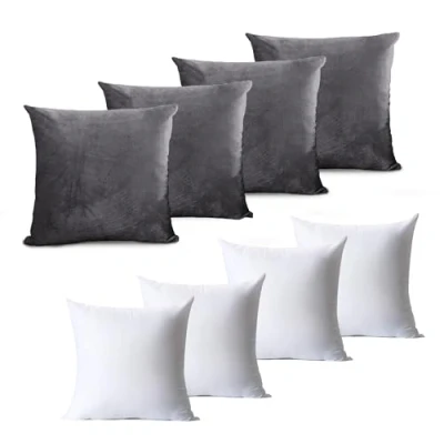 AVAILABLE SIZE: Hafaa 4 pieces of square velvet cushion covers & 4 pieces cushion Inners/Inserts package measures 45 x 45 cm (18 x 18 Inches). Our cushion covers & inners offers a wide range of colors that matches every bedding. HIGH-QUALITY MATERIAL: Made of high-quality breathable velvet material, our plush cushion covers & inners/inserts are soft and pleasant to the touch. We stitch them perfectly to ensure no loose threads or frayed edges. They will not shed feathers or fur after washing and can last for years. DESIGN & TEXTURE: This beautiful cozy throw pillow cover & inners/inserts can bring you a sense of luxury and elegance, it is made up of high-grade velvet with a classy design and look, perfectly suited for photography props. Also suitable for a sofa, bed, home, and office. HIDDEN ZIPPER: The velvet throw pillow cover for the couch features an invisible zipper that allows a more comfortable usage and a trendy finish. You can insert and remove your cushions with ease with the invisible zip, which allows better handling and does not spoil the look of your decor. EASY TO CARE: Machine washable for easy care. Tumble dry at low. Don’t bleach. Don’t iron. Don’t dry clean.