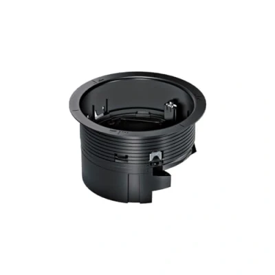 Installation box for 2 x 45 sockets for floor socket R02 Installation box for floor socket according to DIN EN 50085-1 and DIN EN 50085-2-2 including mounting kit with carpet protection frame For the acceptance of two 230 V earthing contact sockets and two data/multimedia ports Wide edge to prevent slipping 3 attachment claws for secure fixation
